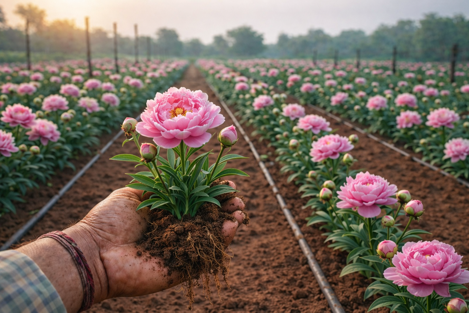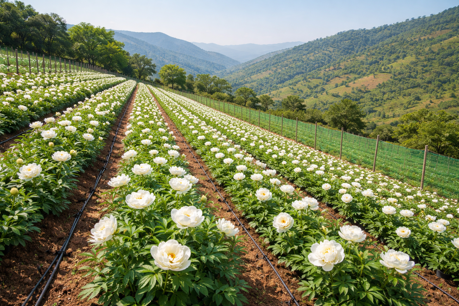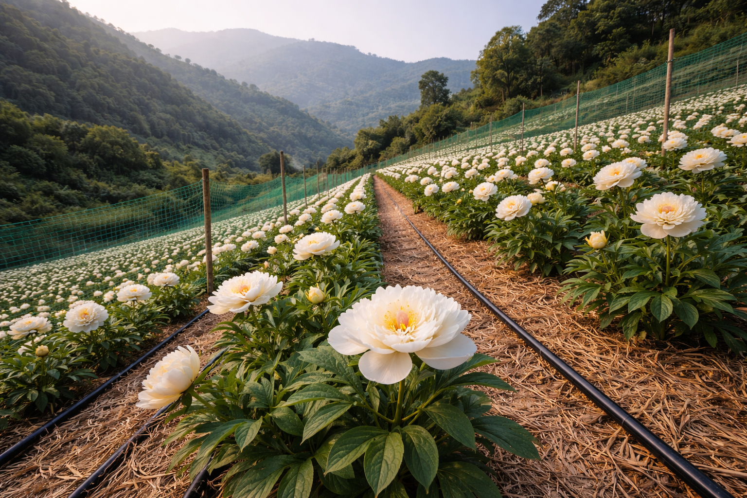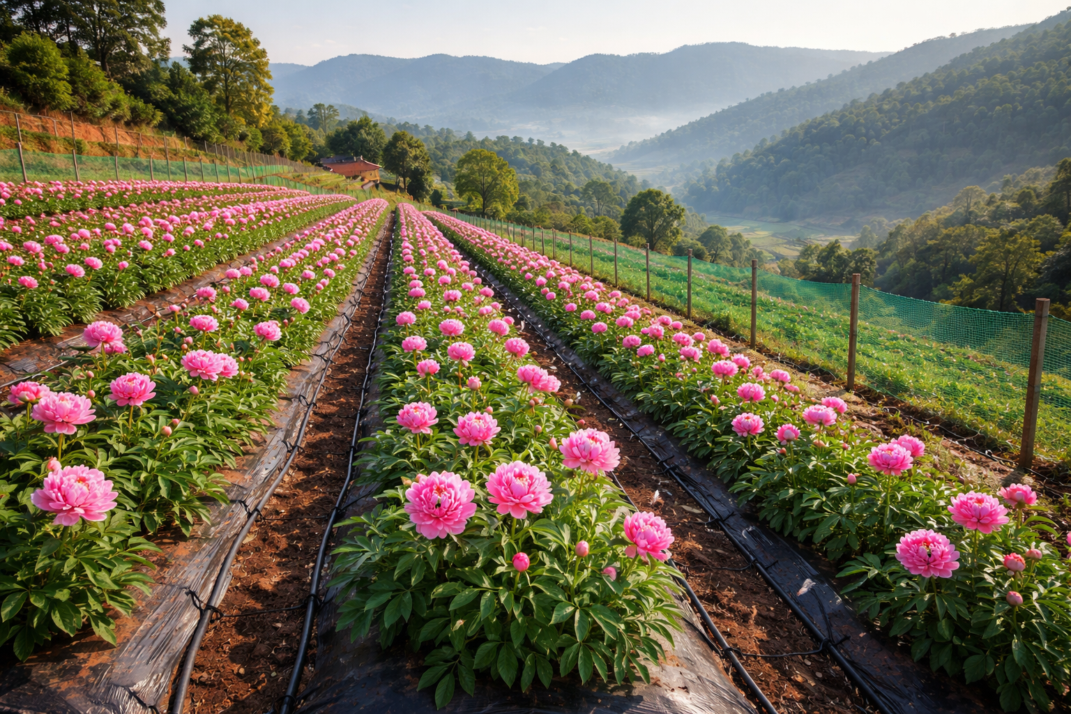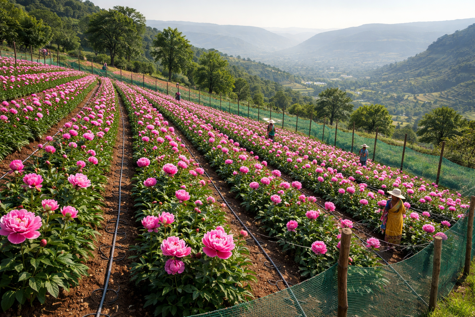 Peony cultivation requires specific climatic conditions and proper management practices to achieve high-quality blooms and premium market value.