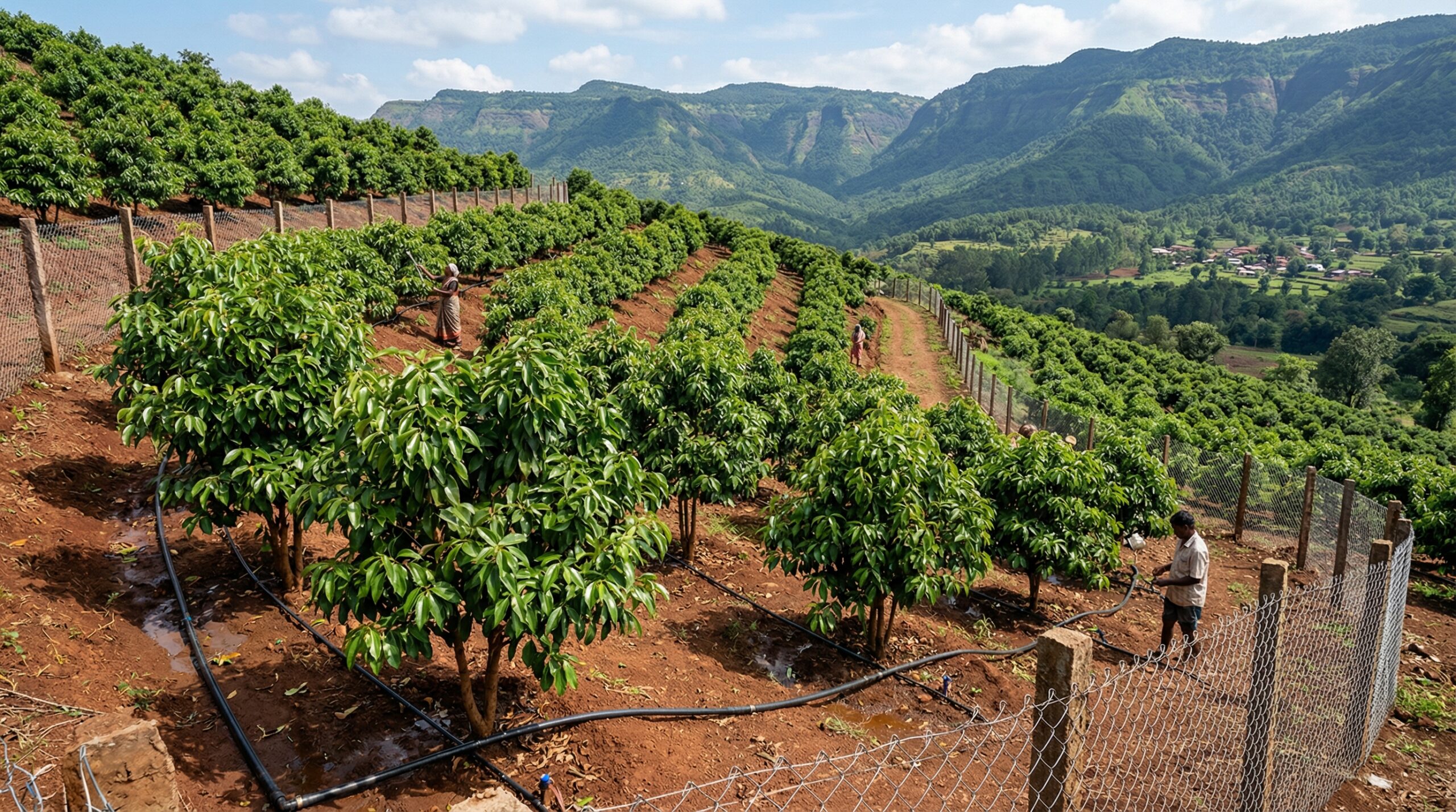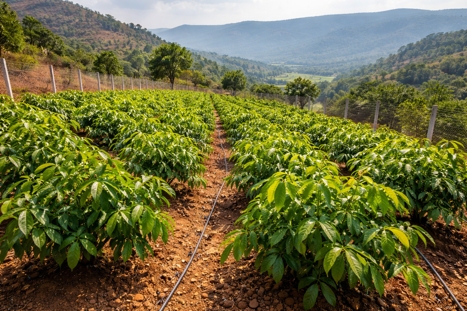 Regular irrigation maintains soil moisture, essential during dry periods and early plant growth stages.