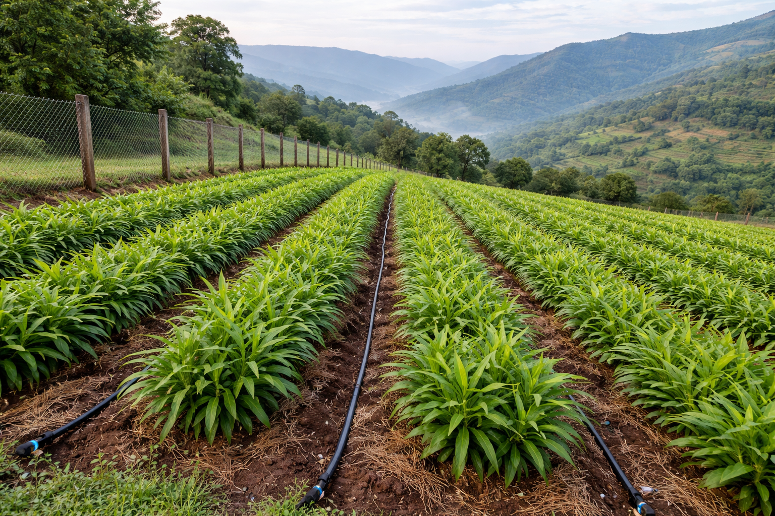 Professional farm management includes seed rhizome selection, bed preparation, irrigation setup, mulching, nutrient application, pest control, and continuous monitoring for optimal yield.
