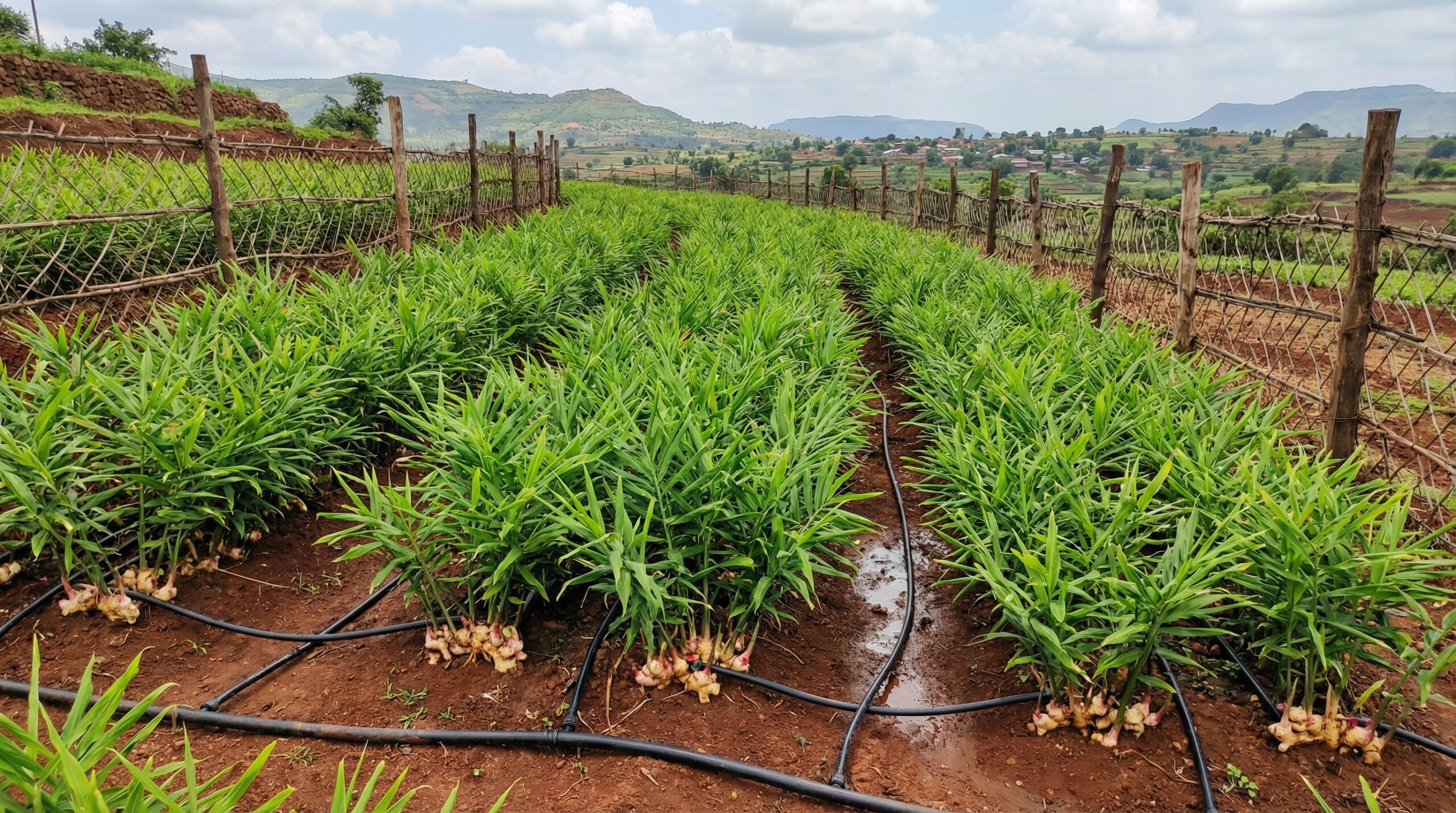 A well-managed ginger farm can produce around 8–12 tons per acre. Yield depends on soil quality, irrigation, seed quality, and proper crop management practices.