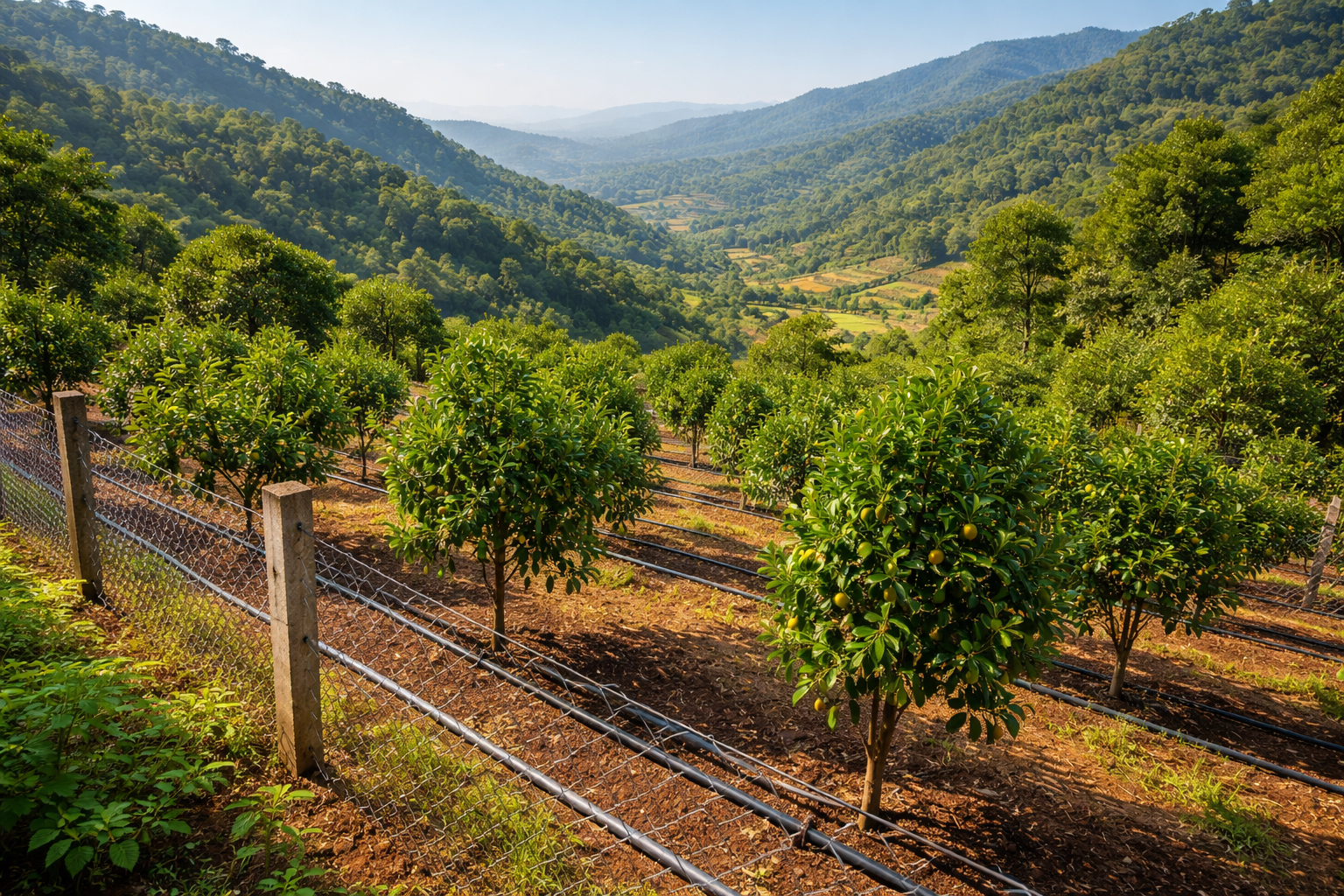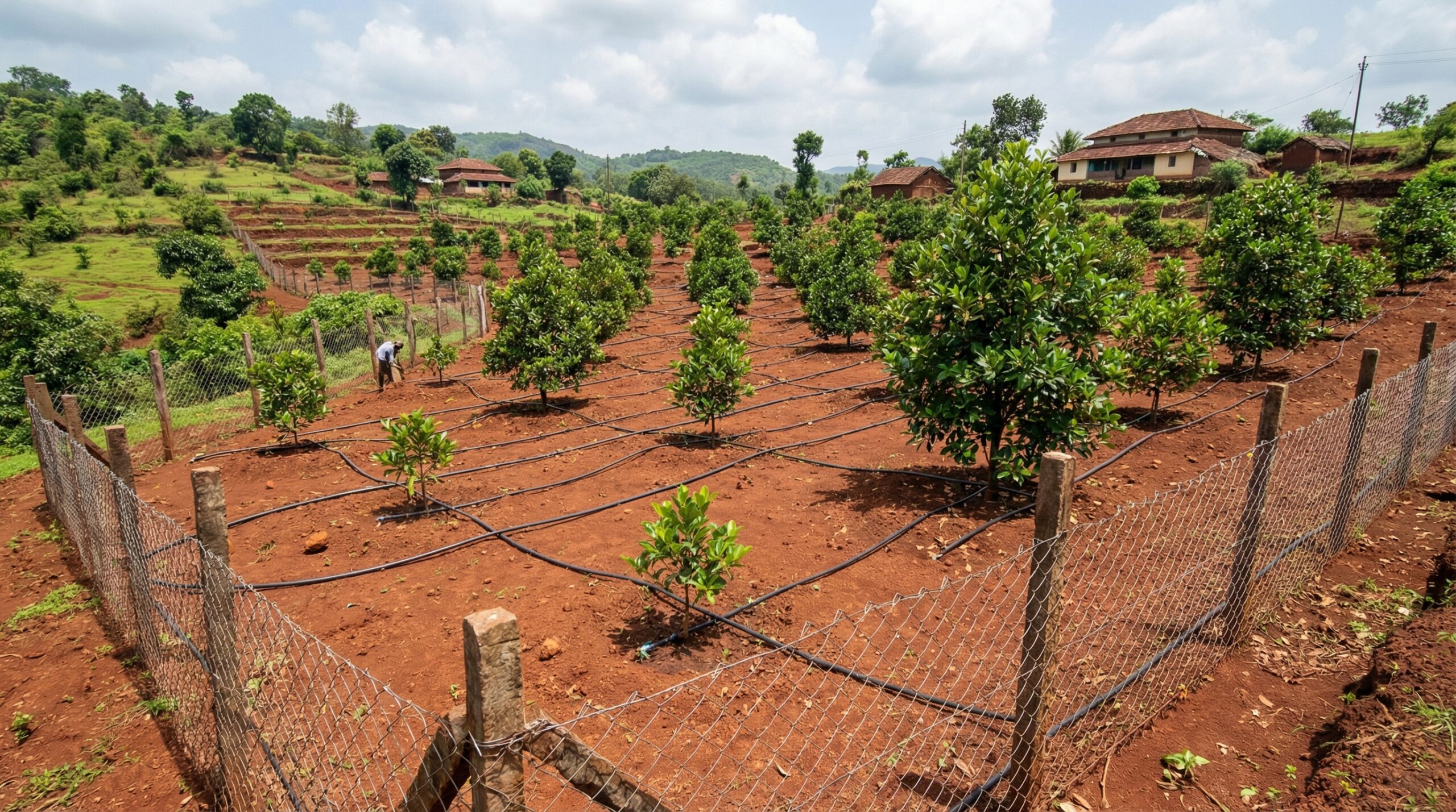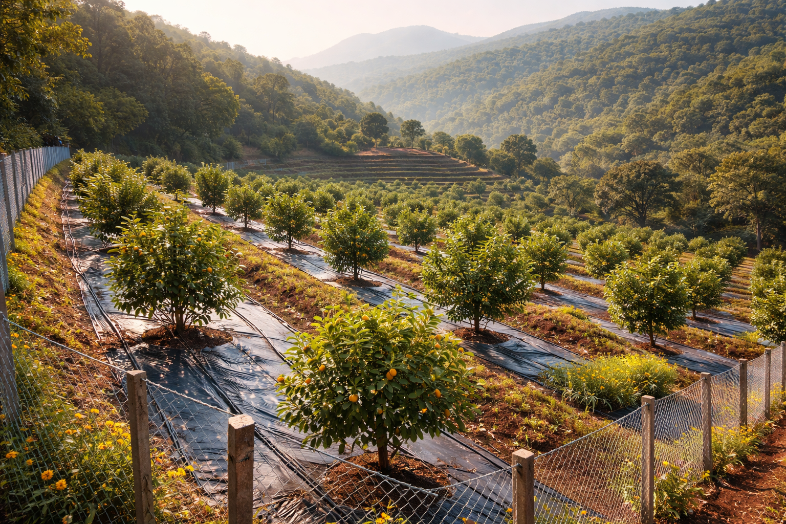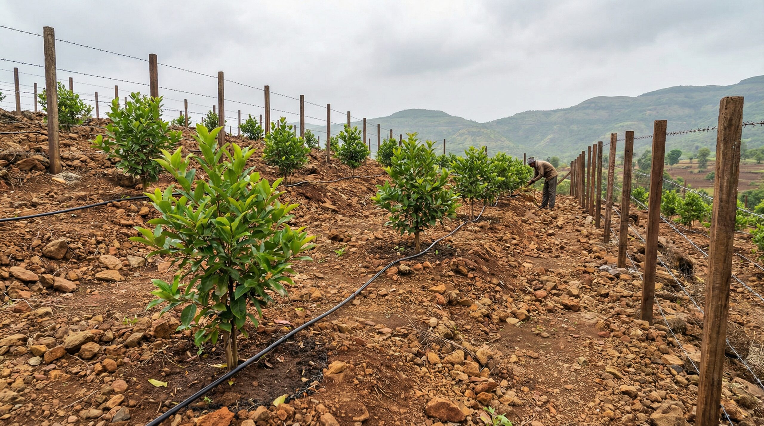 Planting grafted saplings with proper spacing ensures healthy canopy and better yield.