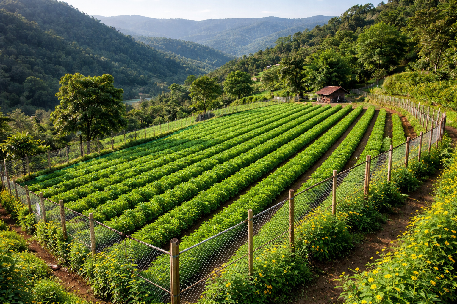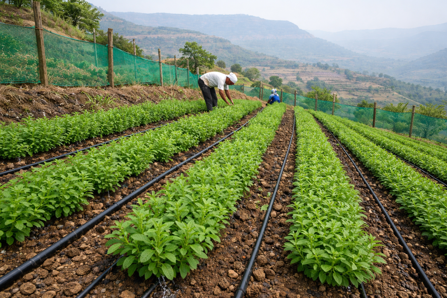 Stevia is a natural herbal crop valued for its intensely sweet leaves used as a zero-calorie sugar substitute. Its leaves contain steviol glycosides, compounds that are 200–300 times sweeter than sugar and widely used in beverages, health foods, and pharmaceutical products. With growing demand for natural sweeteners, stevia farming offers a profitable and sustainable agricultural opportunity.